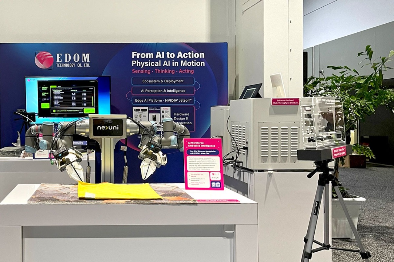 EDOM Technology (TWSE: 3048), Asia’s best solutions partner, will participate in NVIDIA GTC for the third consecutive year under the theme “From AI to Action: Physical AI in Motion.” Together with ecosystem partners, EDOM will showcase its latest AI computing platforms, key components, and system integration capabilities. At Booth #242, EDOM will present physical AI and robotics solutions powered by NVIDIA Jetson hardware and software resources, demonstrating how AI technologies are being developed and deployed across diverse fields such as smart healthcare, vision recognition, and speech understanding. The showcase will highlight EDOM’s capability to connect the AI ecosystem and accelerate industry innovation through integrated solutions.