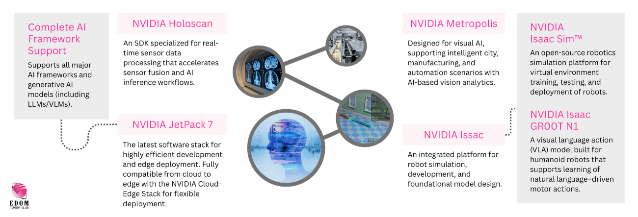 NVIDIA Jetson™ is an industry-leading edge AI and robotics computing platform. Combined with the comprehensive NVIDIA JetPack™, it helps enterprises and educational institutions accelerate the development and deployment of AI and robotics applications.