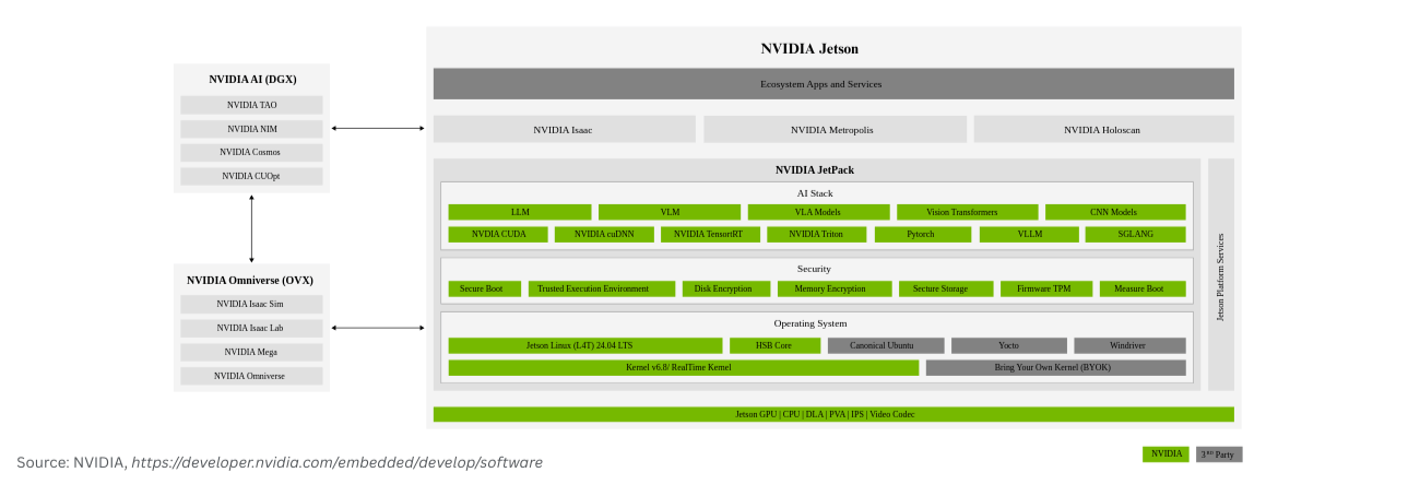 The official software stack for the NVIDIA Jetson Platform with the comprehensive suite of tools and libraries for building edge AI applications.