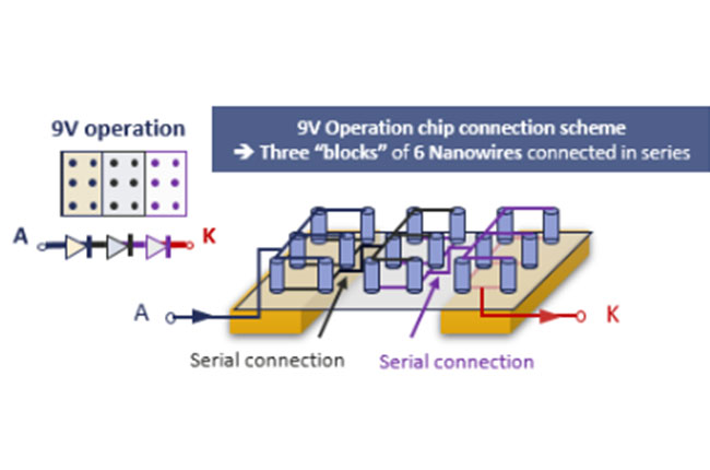 Nanowire electrical connection scheme of 9V FN1530F9 microLED